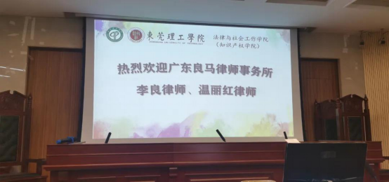 2020年11月25号上午,广东良马律师事务所的李良主任律师以及温丽红律师,以中美企业竞争中的知识产权保护为题,在莞城校区的模拟法庭为伟德官网法学专业大三的员工做了专题讲座。