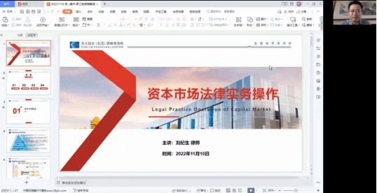 11月10日下午,伟德官网法律系结合《模拟法庭》实训课程和第二届“莞律杯”模拟法庭竞赛,于腾讯会议举办第二十一期法路历程讲座:资本市场法律实务。本次讲座邀请了公司“校企融合”合作单位,东方昆仑律师事务所合伙人刘纪生律师担任主讲人,法律系副主任吉海荣主持本次讲座。