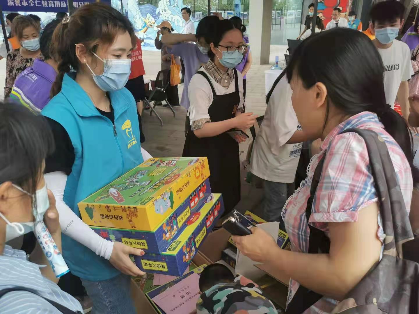 参与本次活动的志愿者们,分成几个小组各司其职。一部分志愿者通过派发宣传手册,让更多人了解自闭症,走进自闭症儿童,增加社会对这一弱势群体的关注与尊重。另一部分协助派发由东莞市慈善会为将近200名星儿家庭送上的爱心物资点读笔。