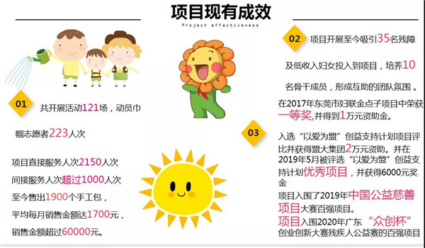 残障人士既是社区一直以来的重点关注对象,也是《社会保障学》课程的重要内容。在课堂分享环节,袁老师结合在兴龙社区设计并实施的“巾帼向日葵——社区残障妇女增收支持计划”,具体分享该项目的背景、实施以及效果。该项目旨在为社区残障妇女搭建一个提高技能的平台,充分发挥社区残障妇女自身的创造力和动手能力,提高社区残障增收,逐渐脱贫,拓展社区残障妇女的社会支持网络。