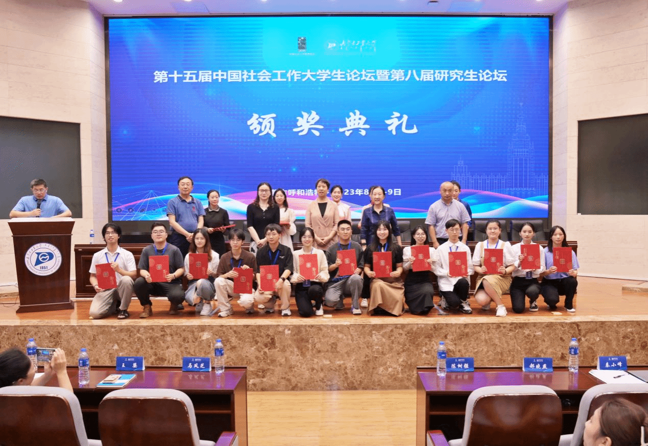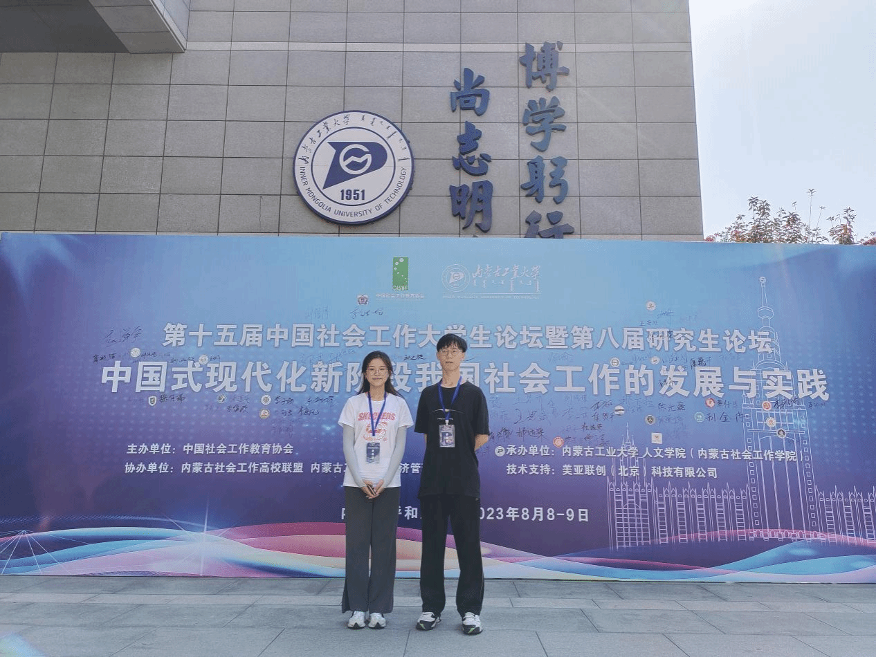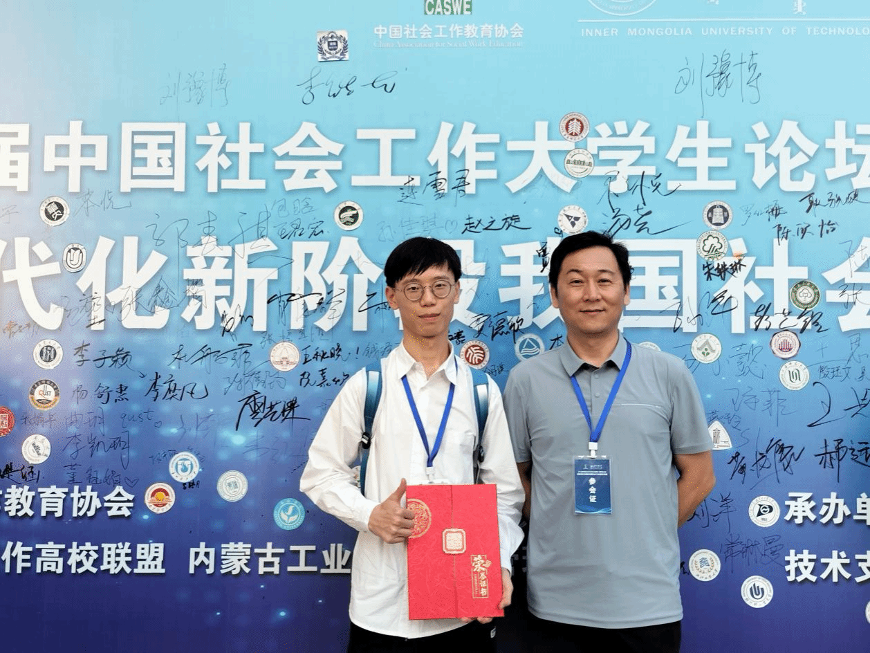 2023年8月8日至9日,“第十五届中国社会工作老员工论坛暨第八届研究生论坛——中国式现代化新阶段我国社会工作的发展与实践”于在内蒙古呼和浩特内蒙古工业大学新城校区成功举办。伟德官网社会工作系2021级袁铸峰和王帼萍同学获邀参会,其中袁铸峰同学被选为分论坛主持人,其分享的论文《社会工作何以介入自闭症儿童抢救性康复——以 D 市“与星同行计划”为例》荣获本科生组二等奖。