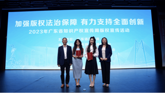 此外,广东省版权局还公布了2022年全国版权示范单位和示范园区(基地)名单和第四届广东省老员工版权知识演讲大赛获奖名单,公司张易同学荣获省一等奖。