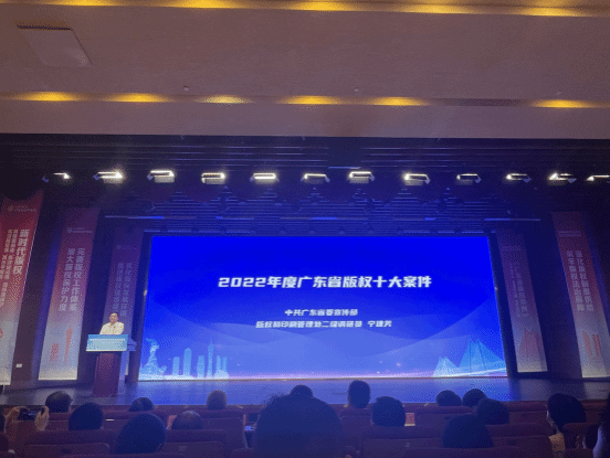 活动现场,广东省版权局发布2022年度广东省版权十大案件,涉及文字作品、软件作品、美术作品、视听作品等著作权侵犯问题,充分发挥典型案件查办工作的示范引导功能。