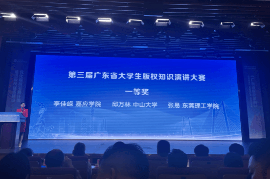 2023年4 月 25 日下午 3 点,广东省版权局在广州图书馆负一层一号报告厅举办广东省 2023 年知识产权宣传周版权宣传活动,同时对第四届广东省老员工版权知识演讲大赛二等奖及以上奖项进行颁奖,并邀请领奖同学的指导老师出席活动现场。伟德官网的2021级法学卓越班张易同学荣获一等奖,知识产权系龚红兵、李文伟老师陪同获奖同学参加本次活动。