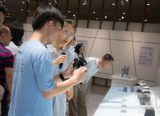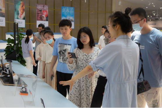 活动期间,审查员带领师生参观知识产权发展成就展、知识产权文化传播与普法基地,就知识产权历史起源与发展、知识产权的价值与作用、知识产权的保护以及相关政策展开介绍,进一步促进员工对知识产权工作的理解和认同。展厅陈列了第二十一届中国专利奖部分得奖作品,其中包括深圳市大疆创新有限公司的云台相机(外观设计金奖)、OPPO手机(外观设计金奖)、广州汽车集团股份有限公司的汽车(外观设计金奖)、深圳迈瑞生物医疗电子股份有限公司的一种弹性成像中的位移检测方法及装置(专利金奖)等。在审查员的引导下,部分员工对展览作品进行了观摩与体验。