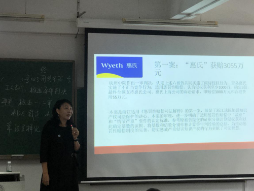 本次讲堂中,李文伟副教授先从法制史的发展引入,重点在于与同学们探讨“惩罚性赔偿”。李文伟老师提到:“惩罚性赔偿在我国主要体现在对商标的保护上,新《商标法》施行以前,我国商标侵权赔偿案件与其他民事侵权损害赔偿一样采用填平原则。由于商标侵权盛行,法定赔偿被滥用,商标权人维权成本高,所以我国新《商标法》引入了惩罚性赔偿制度,这是我国知识产权领域第一次实施惩罚性赔偿制度。”侵犯商标权损害赔偿原则作为商标侵权赔偿制度的基本内核,承载了保护商标权人期待的价值取向。讲堂上,对于“惩罚性”这三个字,李老师向同学们谈了自己的看法:“惩罚性赔偿,我认为在一定程度上不只是‘填平’,其实是补偿。因为法院判处侵权人罚金,只是对侵权中‘工资’、‘投入’、‘原料’等的赔偿,但前期的智力投入的补偿并没有予以体现。现在法律规定了惩罚性的赔偿,其实是对被侵权人前期投入的‘补偿’。”此外,李老师还围绕“惠氏”、“wyeth”商标的侵权的实际案例,加深了同学们对惩罚性赔偿的理解。