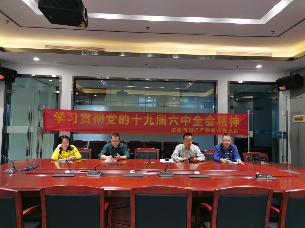 党员同志表示,要认真学习领会习近平总书记在全会上的重要讲话精神和全会决议精神,结合学习贯彻习近平总书记关于全面依法治国和加强知识产权保护的重要论述和指示批示精神,注重读原著、学原文、悟原理,真正感悟习近平法治思想的真理力量;要将学习全会精神与做好教师职责紧密结合起来,更好落实立德树人根本任务;要始终牢记自己的党员身份,时刻不忘初心,团结带动身边的每一位师生群众,抢抓重要历史机遇,着力打造一流应用型法律和知识产权人才培养体系,加强知识产权法学团队建设,加快建设新型高水平理工科大学示范校,为粤港澳大湾区大力培养德智体美劳的社会主义法治建设人才和知识产权人才。