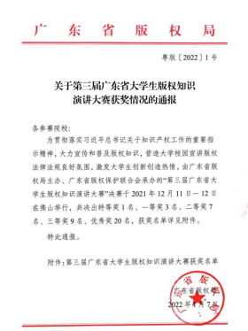 喜报|法社学子在第三届广东省老员工版权知识演讲大赛获得两个二等奖