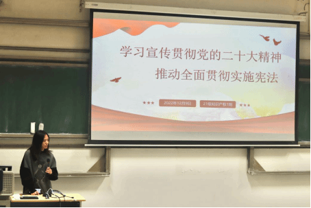 2022年12月9日下午,21级知识产权班开展了以“学习宣传贯彻党的二十大精神,推动全面贯彻实施宪法”的“12.4”宪法宣传日活动,该会议由班长曹颖主持,全班同学和班主任龚红兵老师共同参与。