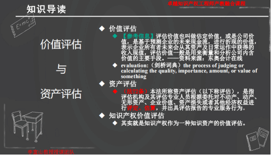 本次课程共分为四个部分进行授课,分别为知识导论、知识产权价值评估概述、案例介绍(上市公司公开披露的各类知识产权价值评估报告)、课后思考与知识拓展等。